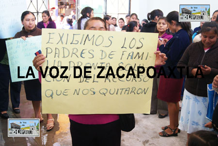 A las 9:00 horas, los padres arribaron a la Corde con cartulinas en donde exigieron la asignación de un nuevo profesor y una comisión ingresó a dialogar con la titular de la coordinación regional, Josefina Luna Vázquez, quien les ofreció que se daría solución de inmediato a la falta de profesor en su escuela. Cerca de las 10:00 horas, el presidente del comité de padres de familia, Filadelfo Félix Bautista, comentó que desde el mes de enero de este año, sin darles ninguna explicación se retiró del plantel a la profesora Gabriela Molina Herrera y desde esa fecha solicitaron la reposición del recurso, pero solo les dieron largas por lo que los padres decidieron protestar para que se resolviera problema.