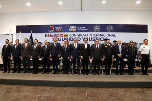 Destacó que en el tema de seguridad pública, es relevante trabajar de manera coordinada y conjunta con los tres órdenes de gobierno, incluyendo a la sociedad, tal como se realiza la instrumentación de la estrategia integral en la materia que considera: la participación ciudadana en la prevención del delito, la innovación y uso de tecnología, la promoción de valores y el fortalecimiento, dignificación y profesionalización del capital humano. Reconoció el interés de la Secretaría de Seguridad Púbica al ejecutar acciones para la dignificación y profesionalización de la función policial que contribuye a que en el Índice de Desarrollo Policial, realizado por la organización Causa en Común, Puebla se encuentre entre las tres corporaciones mejor evaluadas en el país. Durante su intervención, el Presidente Municipal de Puebla, Luis Banck, resaltó que para combatir la impunidad y reducir la incidencia delictiva, en coordinación con los tres órdenes y Poderes de gobierno, se puso en marcha la Mesa de Seguridad y Justicia con la que se ha logrado duplicar el número de detenidos. Antes, añadió, se realizaban 28 detenciones a la semana y ahora alrededor de 57; además se han desarticulado más de 60 bandas dedicadas al crimen organizado; se redujo el índice de impunidad en 78 por ciento; y durante las últimas 12 semanas, de cada 10 presuntos responsables que detiene la policía en la ciudad, 8 pagan consecuencias, en la cárcel o mediante un acuerdo reparatorio con la víctima. Por su parte, el Fiscal General del Estado, Víctor Antonio Carrancá Bourget, señaló que bajo el liderazgo del gobernador Tony Gali se han establecido mecanismos multilaterales para fortalecer la formación policial y subrayó que este estilo de trabajo emana de una prioridad social con intercambio de experiencias y conocimientos probados. El Presidente del Tribunal Superior de Justicia del Estado, Magistrado Héctor Sánchez Sánchez, exhortó a los presentes a utilizar como herramienta la consciencia social como base de la seguridad y la justicia. El Rector de la Benemérita Universidad Autónoma de Puebla, Alfonso Esparza Ortiz, mencionó que la seguridad puede abordarse desde la generación de conocimiento, para fortalecer la formación de elementos de diversas corporaciones, por lo que la Institución que encabeza celebra ser sede del mencionado Congreso. En el evento estuvieron presentes el Presidente de la Junta de Gobierno y Coordinación Política del Congreso del Estado, Carlos Martínez Amador; el Secretario General de Gobierno, Diódoro Carrasco; el Secretario de Seguridad Pública del Estado, Jesús Morales Rodríguez; el Secretario de Seguridad Pública y Tránsito Municipal de Puebla, Manuel Alonso, entre otros.