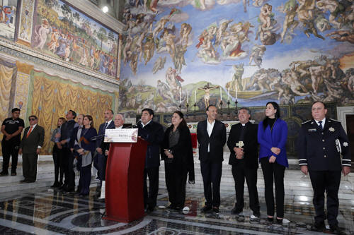 “Los gobiernos somos equilibradores de la vida social, todos por igual, y debemos de acompañar las mejores ideas, provengan de donde provengan, y esta iniciativa, que surge de una oportunidad de tenerla en Puebla fue del Arzobispo”, dijo el gobernador al reconocer el acompañamiento de los hermanos Berumen Antonio y Gabriel. En su mensaje, Barbosa Huerta reiteró que su gobierno mantiene firme su prioridad de servir, “somos servidores públicos y siempre estamos más satisfechos cuando las acciones que acompañamos o las que provocamos tienen beneficios colectivos mayores y ésta tuvo un beneficio colectivo importantísimo, pues más allá del significado que tiene el atrio de la Catedral, se llenó de espiritualidad”. Para concluir, el titular del Ejecutivo señaló que el Gobierno del Estado se encuentra satisfecho por los alcances sociales que tuvo el esfuerzo conjunto de traer a Puebla la Réplica de la Capilla Sixtina. Anunció que enviará una carta de agradecimiento al Papa Francisco para, a nombre de los poblanos, darle las gracias por permitir que llegara a la entidad esta exhibición.