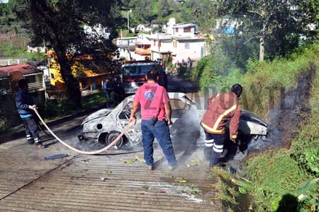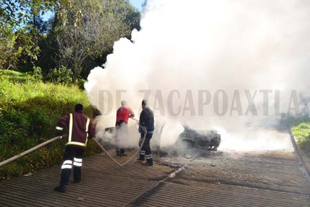 Fue cerca de las 9:00 horas cuando a la policía municipal se reportó que un auto se encontraba incendiado en Zacapexpan, motivo por el cual acudieron policías municipales, quienes solicitaron el apoyo de la Cruz Roja y del cuerpo de bomberos para sofocar las llamas de esta unidad que se encontraba en el camino que conduce a la colonia Los Cristales de la cabecera municipal.