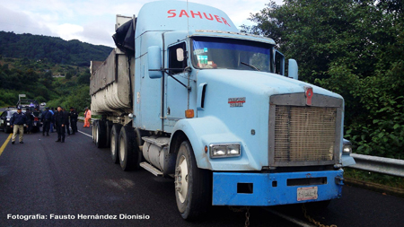 Fue el sábado ocho de octubre cerca de las 8:30 horas, que se dio aviso del robo de un tráiler de cabina blanca cargado de abarrotes cuando circulaba sobre la autopista Puebla – Perote, por lo que de inmediato la PFP emprendió un operativo y la unidad fue ubicada cuando se incorporó a la vía rápida rumbo a la ciudad de Teziutlán. Los elementos de la PFP colocaron dos patrullas sobre el carril de circulación con rumbo a la caseta de Payuca, sin embargo, los sujetos que minutos antes habían robado la unidad, embistieron las unidades federales y se dieron a la fuga, por lo que se inició una persecución del tráiler marca Kenworth con placas de circulación 641EE4 del Servicio Público Federal (SPF), propiedad de la empresa Saber S.A de C.V. Tres patrullas de la PFP siguieron a la unidad y fue a las 9:30 horas en el entronque de la pista que conduce a Tlatlauquitepec, a la altura de la comunidad de Tepeteno, donde con apoyo de policías municipales de la región, lograron detener el paso del tráiler que intentaba tomar el acceso a la cabecera de Tlatlauquitepec y de inmediato fueron asegurados los tripulantes que minutos antes habían bajado al chofer y su acompañante. Los asegurados responden a los nombres de Marcos Murrieta “N.” de 28 años de edad y Fabián Colosia “N” de 31 años, los dos originarios del municipio de Teziutlán, quienes fueron trasladados a la casa de Justicia en esa misma ciudad y quedaron a disposición de las autoridades ministeriales.