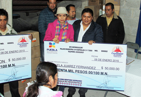 Sedeso y comuna de Cuetzalan entregan cheques para obras