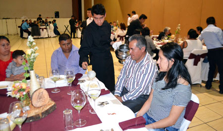 Para el 10 de Junio en el Centro de Convenciones “Juan Francisco Lucas”, alumnos de sexto semestre ofrecieron un banquete a sus padres, en donde se comentó que se aprendieron todas las habilidades aprendidas durante el semestre en el evento que denominaron “Degustando Pasiones”. El coordinador de la carrera, el chef Carlos Hugo Sánchez Salazar, señaló que en el evento aplicaron los conocimientos referentes a la planeación de banquetes, que incluyen el montaje de las mesas, temática del banquete, arreglo del salón, manejo del personal y el menú que se ofrece. Se invitó a los jóvenes que culminarán su Bachillerato en el mes de Julio, que conozcan las diferentes carreras que ofrece el ITSZ y que estudien en una de las mejores Instituciones de Educación Superior a nivel nacional.