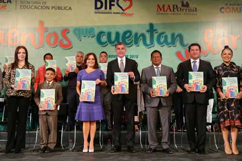 El mandatario destacó que se distribuirán 10 mil ejemplares en español y 500 en náhuatl para facilitar el acceso a los infantes que habitan en comunidades indígenas. Asimismo, se comprometió a realizar una segunda edición con el objetivo de cubrir todos los rincones de la entidad a través de las escuelas, los medios de comunicación y las dependencias estatales. Resaltó que son 12 valores esenciales que caracterizan a los poblanos y que se han reforzado durante su administración: honestidad, respeto, gratitud, paz, solidaridad, lealtad, igualdad, disciplina, amistad, dignidad, responsabilidad y generosidad. “No tengo la menor duda que a través de esta difusión, se han fortalecido las bases de una sociedad cada vez más humana y consciente, pero, sobre todo, la convivencia y armonía en las familias, pues es el núcleo familiar, el primer espacio de formación de una vida de valores”, subrayó. La Presidenta del Patronato del SEDIF, Dinorah López de Gali, comentó que este libro de cuentos es un legado que el gobierno encabezado por Tony Gali deja a las familias poblanas para impulsar la campaña “Donde hay un poblano, hay Compromiso”. “La idea es que los papás y docentes lean estos cuentos con su familia y alumnos, para que reflexionen y aprendan juntos sobre los valores”, expresó Dinorah López de Gali.