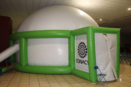 Al interior del centro de convenciones se instaló el planetario móvil, donde los alumnos desde preescolar hasta nivel bachillerato, presenciaron documentales de Astronomía y Naturaleza y además los niños y jóvenes participaron en la exposición de proyectos y experimentos, los cuales compartieron con los asistentes a esta feria.
