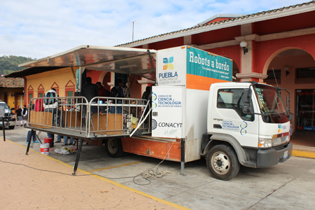 Zacapoaxtla.- Más de mil estudiantes de cinco municipios de la sierra Nororiental participaron este once de octubre en la Feria Científica que organizó el Instituto Tecnológico Superior de Zacapoaxtla (ITSZ) en coordinación con el Consejo Nacional de Ciencia y Tecnología (Conacyt), el cual trasladó esta ciudad el tráiler de la Ciencia y el Planetario móvil.