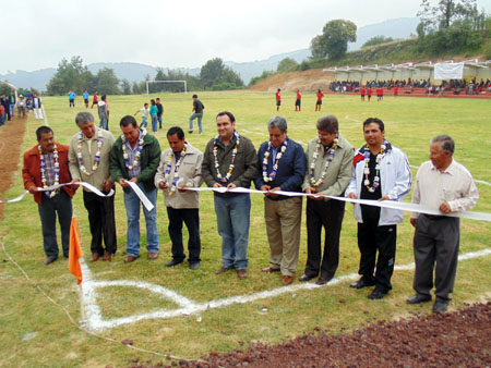 En esta obra se destinaron 401 mil pesos y se construyó el salón de usos múltiples, una petición sobre todo por parte de las beneficiarias del programa Oportunidades, porque no contaban con un lugar para recibir sus pláticas y para las diversas reuniones del programa. Se informó que además se construyeron un consultorio dental y otro espacio para la consulta general, también se rehabilitó la entrada principal, andadores, cercado perimetral y la aplicación de pintura, una obra que beneficia a los más de 5 mil habitantes de Tatoxcac y de algunas comunidades vecinas. Click en la foto para agrandarla 3 millones para cancha de futbol soccer