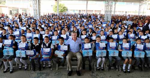 El mandatario destacó que, por primera vez, se repartieron 790 mil zapatos para estudiantes de primarias generales e indígenas públicas, por un total de 123.7 millones de pesos, acción que abona a combatir algunas de las causas de la deserción escolar. Señaló que la educación es primordial para su administración, en este sentido, recordó que la meta es otorgar un millón 81 mil 171 paquetes en el estado, con el objetivo de contribuir a la economía familiar. “Me pongo los zapatos, porque siempre hay que estar en los zapatos del otro para entenderlos y yo entiendo las necesidades, entiendo sus necesidades, entiendo el trabajo y lo que necesitan los jóvenes, los niños, las mujeres, los hombres, lo que necesita el campo, la salud, la educación, la infraestructura, todo va de la mano de la familia. Quiero, como hoy, ver familias más fuertes, más unidas”, expresó.