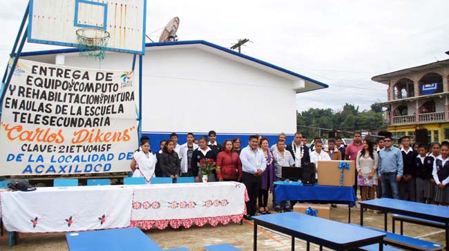 El alcalde comentó en entrevista que en una visita anterior a esta comunidad, le solicitaron el equipo de cómputo y con la finalidad de mejorar las condiciones de estudio de los jóvenes, acudió a la entrega de este apoyo, además dijo que se inauguró el trabajo de mejora de la escuela, en donde el material loa portó el Ayuntamiento y la mano de obra la aportaron los padres de familia. “Esto es muestra también de que si seguimos en el ejercicio de trabajar juntos, pero sobre todo solidarios en un tema tan sentido como es el tema del mejoramiento de los espacios de nuestros hijos en las comunidades y la cabecera municipal, yo creo que podemos siempre encontrar el resultado de que con la suma de todos podemos lograr importantes avances” expresó el Presidente de Cuetzalan.