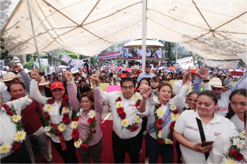 Destacó que en este momento complejo que vivimos, se debe transitar con mucha inteligencia y madurez. Ante los miles de poblanos de la zona que acudieron a expresarle su apoyo y confianza, el abanderado a la gubernatura se comprometió a no fallar en sus compromisos, entre ellos devolver la seguridad pública a la zona y el fortalecimiento del campo. Finalmente, Miguel Barbosa mencionó que a 14 días de haber iniciado sus actividades proselitistas ha encabezado 35 actos multitudinarios y ha sostenido más de 70 reuniones de campaña. En este evento participaron el delegado presidente de Morena, Mario Bracamonte; la dirigente del PT, Lizet Sánchez; así como diputados federales, locales y presidentes municipales y auxiliares.