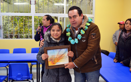 A nombre de la comunidad escolar del CAM y los padres de familia, la Directora María Elena Nieto Azpíroz, agradeció al Presidente por esta obra que será de gran beneficio para los niños con capacidades diferentes que acuden a esta institución y que ahora cuentan con un espacio digno. Tras el corte del listón, una pequeña alumna del CAM le entregó un reconocimiento por esta obra y al respecto el Presidente Municipal que fue acompañado por la Presidenta del DIF Margarita Lobato así como por Regidores del Ayuntamiento, reconoció en primer lugar el trabajo de las maestras y maestros que laboran en el plantel.