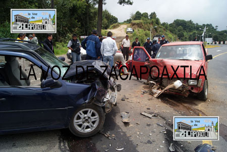 Marisela Díaz Ángeles, de 30 años de edad, quien conducía una camioneta Nissan, color rojo, relató que se dirigía rumbo a Zacapoaxtla, cuando de un camino de terracería salió sin ninguna precaución una camioneta pointer tipo Guayin, color azul marino, invadió su carril y los golpeó en parte derecha de su unidad. Díaz Ángeles resultó con lesiones severas en la pierna derecha y el brazo izquierdo y su madre de 58 años de edad, Ernestina Ángeles Sánchez, tuvo que ser inmovilizada por paramédicos de la cruz roja de esta ciudad, porque presentaba fractura en la pierna izquierda, además de golpes en el rostro, por lo que fueron trasladadas al hospital del Instituto Mexicano del Seguro Social (IMSS) en Zacapoaxtla.