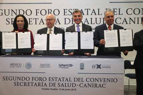 San Andrés Cholula.- El Secretario de Salud federal, José Narro; el gobernador Tony Gali; la titular de los Servicios de Salud del Estado de Puebla, Arely Sánchez y el Presidente de la Cámara Nacional de la Industria de Restaurantes y Alimentos Condimentados (CANIRAC) delegación Puebla, Ignacio Alarcón, firmaron un convenio de colaboración por la Estrategia Nacional para la Prevención del Sobrepeso, la Obesidad y Diabetes.