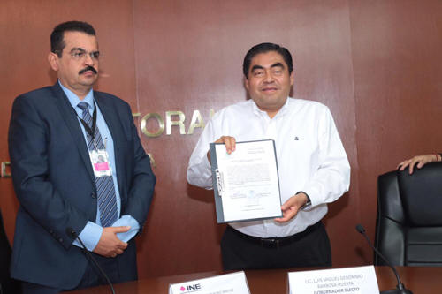 Miguel Barbosa recibe constancia como Gobernador electo de Puebla *Garantiza condiciones para lograr el bienestar de todas y todos los poblanos con nuevas formas de hacer gobierno *Todos a trabajar por Puebla pues hay mucho que hacer, invita el gobernador electo *Por primera vez en 16 años un resultado electoral no es impugnado. 12 Junio 2019