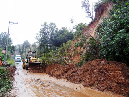 Los autos compactos y camionetas pequeñas, se desviaron a través de un camino de terracería en la Colonia Calcahualco, pero las unidades grandes, permanecen varadas en la carretera a la espera de que las autoridades municipales retiren los árboles, piedras y tierra que obstaculizan esta vía de comunicación.