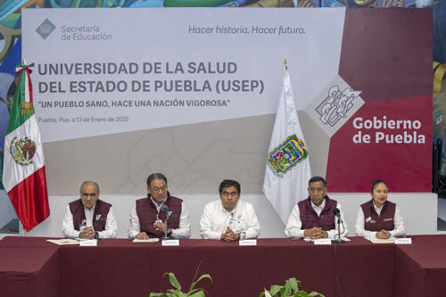 Presenta Barbosa Huerta la Universidad de la Salud de Puebla · “La USEP contará con dos subsedes, una en la Sierra Norte y otra en la región de Tehuacán”, expuso el mandatario. · “En una segunda etapa, la institución abrirá las carreras de Fisioterapia, Nutrición Clínica, Psicología, así como Ingeniería Biométrica y Biónica”, comentó el médico, Hugo Eloy Meléndez. 13 Enero 2020