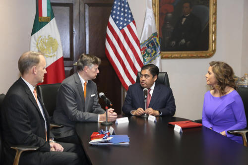 En Puebla hay estabilidad, afirma Barbosa a embajador de Estados Unidos · La secretaria de Economía, Olivia Salomón será la responsable de formar una agenda bilateral. · El mandatario se reunió con el diplomático estadounidense Christopher Landau. 14 Febrero 2020