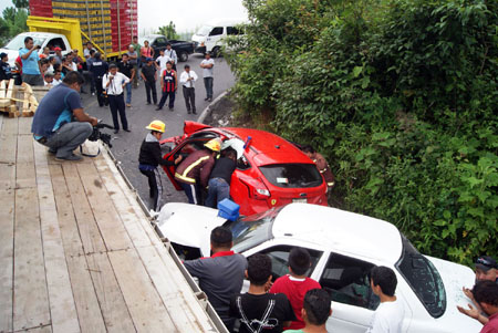 Dos unidades se impactan contra tráiler en tramo La Cumbre - Cuetzalan 14 Julio 2013
