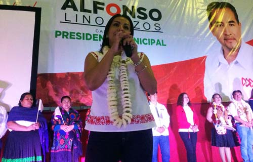 Y es que durante el recorrido que realizó en compañía del presidente del comité del tricolor y de los candidatos a diferentes cargos del partido que abandera, se encontró con varias mujeres artesanas que le expresaron su solicitud de ser respetadas en la capital del estado cuando acuden a realizar sus ventas, detallando que en ocasiones les quitan el poco dinero que salen a ganarse con mucho esfuerzo, por lo que se comprometió con ellas a ser esa mujer que vele por sus intereses en Puebla y en cualquier parte del país. Reiterando en varias ocasiones que a pesar de legislar en la ciudad de México, estará siempre cercana a la gente de Hueyapan y de todo el distrito que representará, insistiendo en que las veces que sean necesarias acudirá a charlar con cada una de ellas y de la ciudadanía en general, recordándoles que ya es parte de ellas desde el momento en que tuvieron ese acercamiento y que la hicieron parte de su vida al contarle sus historias de vida. “No están solas, llegando al congreso ustedes van a contar con una amiga que las va a defender, para que ya no abusen de ustedes, para que no les su dinero cuando vayan a puebla, siempre tendrán una amiga que los defienda” indicó durante su discurso, recordándoles que Karla Martínez es una mujer de palabra, de hechos que va a cumplir las cosas a las que se está comprometiendo, sabedora que es una gran responsabilidad que su partido le ha confiado. Enfatizando que uno de sus intereses es dignificar el papel de las empresarias como el caso de las artesanas de Hueyapan, Karla Martínez recordó que el trabajo que realice será coordinado con Enrique Doger en el estado de Puebla y con cada uno de los presidentes municipales de su distrito, por lo que pidió votar pos los candidatos del Partido Revolucionario Institucional este 1 de Julio en las urnas.