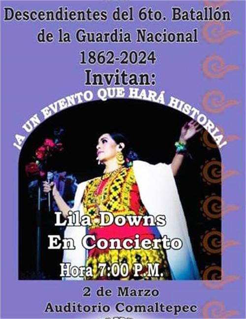 Ramón Vergara Sotero promotor cultural de Comaltepec, explicó que este es un homenaje por los antecedentes históricos de dicho lugar, desde el nacimiento del General Juan Francisco Lucas, la vida y obra de Gabriela Mistral, la creación de Educación Indígena y la fundación del primer internado indígena de la Sierra Norte de Puebla, el internado “Pedro Molina Corona”. Embajadora de la cultura a nivel mundial, Lila Downs es una cantante, autora mexicana y antropóloga, quien además de cantar en español e inglés, también interpreta melodías en mixteco, zapoteco, así como maya, purépecha y náhuatl. Reivindica sus raíces mexicanas y de los pueblos indígenas, además de la música regional de Oaxaca.