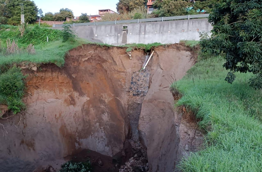 Las lluvias provocaron la ruptura de un drenaje, lo que derivó en un socavó que avanzó hasta pocos metros del muro de contención que sostiene los carriles de circulación, en el tramo entre el Puente Las Bugambilias y el acceso a la comunidad de Zocuila en este municipio.