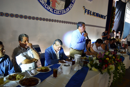 En el auditorio municipal, acompañaron a las autoridades municipales, el diputado federal electo Hugo Alejo Domínguez y el diputado local Cupertino Alejo Domínguez, quienes externaron que continuarán desde los congresos estatal y nacional, trabajando por mejorar las condiciones de trabajo de los docentes con labores de gestión ante el gobierno y el SNTE.