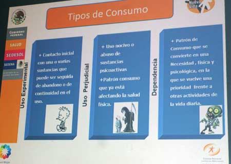 A través de la conferencia, se les explicó a los jóvenes que el problema inicia porque la venta de drogas es un negocio de grandes ganancias, por lo que se invierte dinero para videos, canciones y programas que incitan a los jóvenes a consumir alcohol o drogas y los aleja de las conductas cívicas.