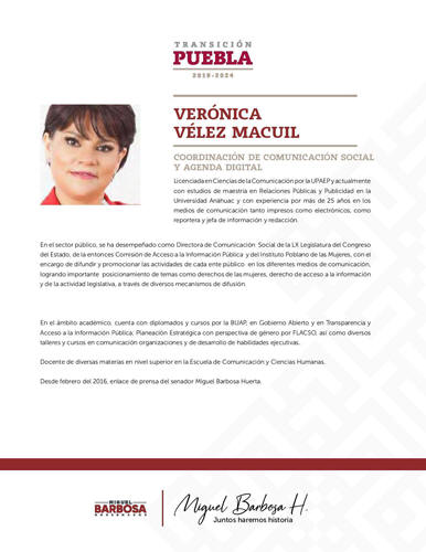 La presentación de las nueve personas que participarán en este proceso, corrió a cargo de Verónica Vélez Macuil, directora de Comunicación del equipo del gobernador electo, quedando conformado de la siguiente manera: David Méndez Márquez, recibirá la Secretaría General de Gobierno. Abelardo Cuellar Delgado y Rodrigo Osorio Díaz, Recibirán la Secretaría de Competitividad, Trabajo y Desarrollo Económico. Vanessa Barahona de la Rosa, se hará cargo de la recepción de la Secretaría de Cultura y Turismo. Ana Laura Altamirano Pérez, recibirá la Secretaría de Desarrollo Rural Sustentabilidad y Ordenamiento Territorial. Carlos Francisco Urbina Tanús, estará en la Secretaría de Infraestructura Movilidad y Transporte. Guillermo Ruiz Argüelles, recibirá la Secretaría de Salud. Alejandra Domínguez Narváez, recibirá la Secretaría de Educación Pública. Miguel Castillo Cubillas, estará en el área de la Secretaría de Desarrollo Social y Bienestar. Verónica Vélez Macuil, en la Dirección de Comunicación Social. Los trabajos de entrega-recepción comenzarán a partir de esta semana, una vez que los gobernadores, electo e interino, lleven a cabo la reunión institucional para formalizar las agendas de actividades que habrán de desarrollarse durante estos casi dos meses de transición de la administración gubernamental. Esta lista, es solo una parte del total de integrantes que conformarán el Equipo de Transición, ya que durante los próximos días habrán de integrarse más personas para la realización de los trabajos en las áreas que faltan, sin que necesariamente formen parte del próximo gabinete que iniciará funciones el 1 de agosto.