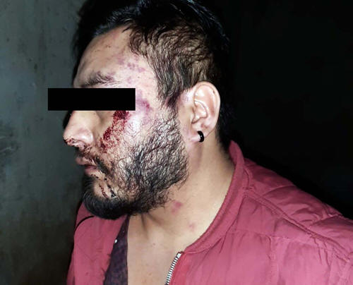 En la denuncia, Miguel Ángel “N.” relató que el pasado 12 de noviembre, cerca de las 23:00 horas, acudió a casa de su pareja, pero debido a una discusión que se presentó, acudieron al lugar seis elementos de la policía, quienes lo detuvieron y lo trasladaron a la comandancia. Afirmó que al llegar al lugar y aún con las esposas colocadas, lo comenzaron a golpear, lo tiraron y entre varios policías lo patearon, lo que le provocó lesiones en diversas partes del cuerpo, especialmente en el rostro. Al día siguiente y tras ver las lesiones que presentaba, sus familiares le recomendaron que se presentara una denuncia por abuso de autoridad y lesiones, por lo que acudieron a las oficinas de la Fiscalía en la ciudad de Zacapoaxtla, en donde en primer término fue evaluado por el médico legista. El legista dio fe de las lesiones, entre ellas un derrame ocular del 60 por ciento de la superficie del lado izquierdo, además de cuatro hematomas, uno de ellos de 12 centímetros, además de lesiones severas en el tabique nasal.