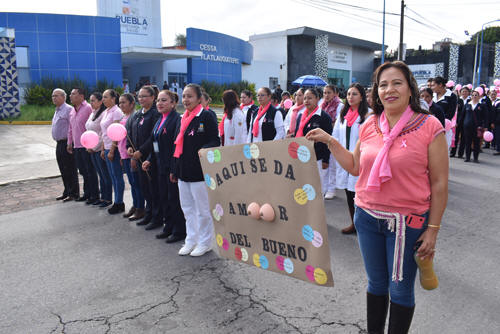 Con la participación de auxiliares de salud, personal de los Servicios de Salud del estado (SSE), así como estudiantes y trabajadoras del ayuntamiento, se realizó un desfile por las principales calles de la ciudad, en donde el principal mensaje fue la importancia de la auto exploración de los senos y la asistencia a los centros de salud en caso de detectar alguna irregularidad.