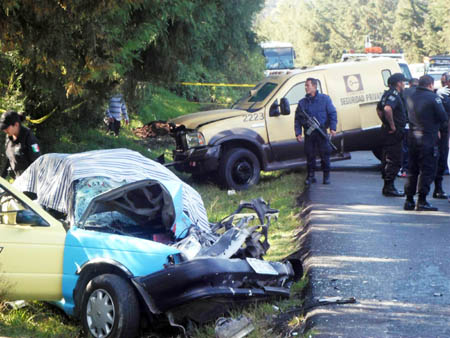 El accidente se registro aproximadamente a las 14:00 horas y hasta el momento se continuan realizando las diligencias por parte de ministeriales para el levantamiento de los cuerpos, por lo que aun no se a informado de los fallecidos, aunque se sabe que se trata de tres hombres y una mujer, además de un menor de tan solo 8 años de edad los que perdieron la vida.