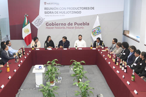 El titular del Ejecutivo destacó que dichas reuniones sirven a su gobierno para en conjunto definir acciones y estrategias que permitan a los empresarios poblanos contar con mecanismos adecuados en la comercialización y promoción de sus productos, “hoy nos encontramos y me da gusto hacerlo pues concretamos rutas de trabajo que les sean útiles a ustedes”. Para concluir el gobernador del estado propuso a los productores sostener otra reunión en un mes, con la finalidad de informar los avances de su propuesta, de principio, iniciar en este tiempo la promoción del municipio de Huejotzingo como destino turístico a nivel nacional. A este encuentro realizado en el “Salón 5 de Mayo” de Casa Aguayo, acudieron la presidenta municipal de Huejotzingo, Angélica Alvarado Juárez; Jaime Guzmán Orozco, director general de emprendimiento y competitividad de la Secretaría de Economía del Estado, así como 14 representantes de empresas productoras de sidra.