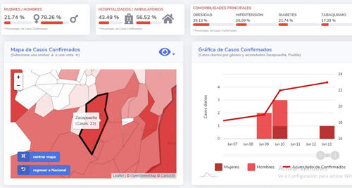 Este municipio tiene 23 casos positivos, por encima incluso de Teziutlán que tiene 18 casos, y de todo el norte del estado de Puebla, Zacapoaxtla se encuentra en cuarto lugar, solamente por debajo de Huauchinango que tiene 106 casos, Xicotepec de Juárez y Chignahuapan, cada uno con 25 casos positivos. Las cifras de Zacapoaxtla son al 20 de Junio: 23 casos confirmados, 16 casos negativos, 16 casos sospechosos, tres defunciones, además de 15 pacientes recuperados. Toda esta información se da a conocer en medio de una total confusión entre los ciudadanos, ya que el Gobierno Federal emite un mensaje, el Gobernador emite otra postura y cada presidente municipal actúa conforme a sus propios criterios, en tanto ya se reiniciaron actividades en diversos municipios. En el estado de Puebla se reportan también a este sábado 20 de Junio, 7 mil 49 casos confirmados y 894 defunciones,
