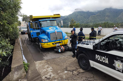 Al lugar arribaron elementos de la Secretaria de Seguridad Pública de esta ciudad, para tomar conocimiento de que se trataba de un choque frontal, el cual dejo desafortunadamente sin vida un masculino que circulaba a bordo de una motoneta color rojo. De acuerdo al protocolo policial, el área fue acordonada por las autoridades, esto para no contaminar la escena del accidente entre la motocicleta y un camión tipo plataforma, color azul, repartidor de material para construcción. Fue el mismo conductor de la pesada unidad quien manifestó que el motociclista invadió el carril contrario hasta chocar de frente contra el camión. Desafortunadamente el varón de aproximadamente 65 años de edad perdió la vida de manera inmediata tras el choque frontal y permanece en calidad de desconocido.