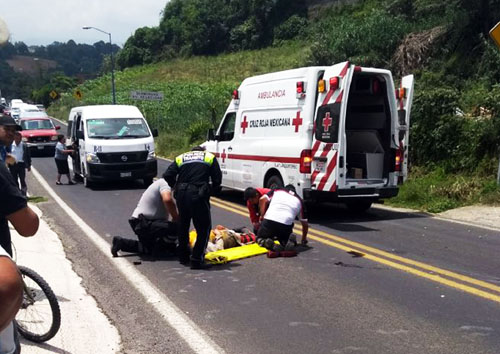 Se informó que el motociclista de nombre Antonio Herrera Aguilar circulaba con dirección al municipio de Teziutlán, pero al llegar a una curva se encontró con la patrulla que había dado la vuelta en un lote baldío, lo que provocó el impacto de la motocicleta marca Italika con uno de los costados del vehículo oficial y el conductor salió proyectado rumbo al asfalto. De inmediato los elementos viales detuvieron el tráfico y solicitaron el apoyo médico, por lo que al lugar arribaron elementos de protección civil municipal y paramédicos de Cruz Roja, quienes estabilizaron al lesionado, quien sufrió una fractura en la pierna derecha, además de contusiones y laceraciones en diversas partes del cuerpo. En tanto los paramédicos realizaban la atención del lesionado, el tráfico fue desviado hacia el libramiento de la ciudad y una vez que se retiraron la ambulancia y las unidades del ayuntamiento, se normalizó el tráfico sobre esta carretera federal, en tanto la motocicleta fue trasladada al corralón municipal a disposición de la dirección municipal de vialidad.