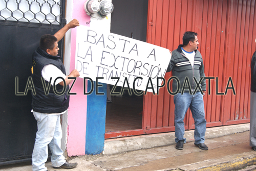 cartel con la leyenda “Basta a la extorsión de tránsito”.