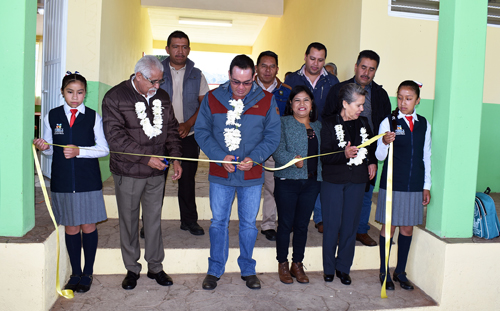 En primer término se llevó a cabo la ceremonia cívica, en donde el Regidor de Educación Rodolfo Salazar Ramiro, realizó la inauguración del ciclo escolar y el personal docente así como padres de familia y alumnos, agradecieron al Ayuntamiento la obra que beneficiará a los estudiantes y personal docente. El Presidente informó que la obra incluyó la rehabilitación de toda la instalación eléctrica del plantel educativo, se aplicaron 2 mil 165 metros cuadrados de pintura, se colocaron 320 metros cuadrados de pisos en aulas, se aplicaron 810 metros de impermeabilizante y fue sustituida la herrería tanto de las aulas, como de las áreas de dirección, sanitarios y desayunador escolar. Dijo que desde el inicio de la administración uno de los principales objetivos fue el de atender el grave rezago en infraestructura que enfrentaban las escuelas de Zacapoaxtla, con desayunadores y aulas donde se filtraba el agua, por lo que se emprendieron desde el 2014 acciones que mejoraron las instalaciones en todas las instituciones educativas. Tan solo en la cabecera municipal recordó que se rehabilitaron por completo escuelas como la Primaria “Carlos Betancourt Molina”, el Preescolar “Amistad”, se techó el Preescolar “El Pípila”, se construyeron seis aulas en el Preescolar “Zacapoaxtla”, ocho aulas en la Secundaria “5 d Mayo de 1862”, además de construcción de escuelas completas como la Primaria de Xalticpac, la Primaria de Las Lomas y el Bachillerato de Tatoxcac, además de techados, desayunadores y apoyos a el resto de instituciones. Para la Primaria de Xochitepec queda pendiente el cercado perimetral, pero confió en que el próximo Ayuntamiento, atienda las necesidades de los planteles educativos de Zacapoaxtla, tanto con recursos de Ramo 33, como con recursos propios y Participaciones.