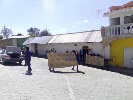 La información fue denunciada este martes en la ciudad de Puebla por parte de Renato Romero, integrante del Movimiento para la Defensa del Agua y de otros Recursos Naturales de Ocotepec, Puebla y Pueblos Unidos. “Lo único que pedíamos era que el Cabildo sesionara y rechazara la reforma al Artículo 12 Constitucional que busca privatizar el agua en el municipio”, destacó. Los hechos ocurrieron al mediodía cuando la edil rendía cuentas a la población, mientras afuera de la presidencia municipal cerca de un centenar de policías golpearon a punta de macanazos a los opositores a la privatización del agua. En el zafarrancho, señaló que los uniformados intentaron detener a la cabeza visible del movimiento, el comisariado ejidal de Ocotepec, Oswaldo Villegas Martínez, quien se encuentra resguardado ante el temor de ser arrestado en cualquier momento. “Impidieron a golpes nuestro derecho a manifestarnos, atentaron contra la vida del compañero Oswaldo Villegas, se metieron en una vivienda donde hirieron con arma a una mujer; destruyeron bienes, y todo esto avalado por el delegado de Gobierno en la región”, acusó, en rueda de prensa. El declarante acusó a la presidenta municipal de la cobarde agresión contra los pobladores, quienes –dijo- sólo exigimos que el agua no se venda. Por esta razón, alrededor de las 11:10 horas se trasladaron a la Comisión Estatal de Derechos Humanos (CDH) a presentar una queja por las violaciones a sus garantías individuales. En Puebla, los pobladores de Ocotepec fueron respaldos por la asociación civil Asamblea Social del Agua (ASA) y el Frente de Pueblos en Defensa de la Tierra y el Agua. “Los defensores del agua sólo nos manifestamos pacíficamente, nunca pretendimos entrar ni mucho menos impedir el informe”, aclaró Renato Romero.