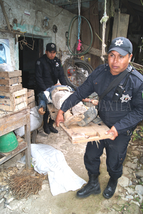 Rodolfo Miguel Paleta Toxtle, agente ministerial, informó que el occiso respondía al nombre de Lauro Flores García y tenía su domicilio en la calle Adolfo López Mateos de la sección primera de esta junta auxiliar, el cual se encontraba atado de manos y pies y de acuerdo a las primeras indagaciones, falleció víctima de asfixia.