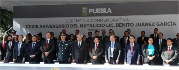 Tras colocar una ofrenda floral en honor a Benito Juárez García; Hernández y Genis lo reconoció como un hombre justo, que trascendió en el tiempo por su legado e historia. "Benito Juárez fue un hombre integro, que creía en las ideas que defendía, leal a sus ideas y fiel a sus ideales, con errores y aciertos; fue un patriota profundamente convencido de lo que quería para México, independencia y libertad, para pensar, para escribir, para transitar y para actuar, siempre con la razón y la ley, sin simulaciones, ni dobleces, integridad y lealtad a toda prueba, dar ejemplo de lo que se cree con el ejemplo diario", expresó. Asimismo, resaltó que el defensor de la soberanía de la Nación, buscó siempre preservar los eternos valores de la nación, independencia libertad, unidad en la pluralidad y soberanía nacional, así como sus principios morales que fueron la austeridad y la lealtad al pueblo. Estuvieron presentes el Coordinador del Gobierno Federal en el Estado, Rodrigo Abdala Dartigues; el Presidente de la Junta de Gobierno y Coordinación Política del Congreso del Estado de Puebla, Gabriel Biestro Medinilla; el Secretario General de Gobierno del Estado, Fernando Manzanilla Prieto; el Comandante de la 25/a. Zona Militar, Gral. de Bgda. D. E. M. José Alfredo González Rodríguez; la Presidenta Municipal de Puebla, Claudia Rivera Vivanco; el Magistrado Presidente del H. Tribunal Superior de Justicia del Estado, Héctor Sánchez Sánchez; el Encargado de la Fiscalía General del Estado, Gilberto Higuera Bernal; el Secretario de Seguridad Pública del Estado, Manuel Alonso García; Gran Maestro de los Liberales del "Gran Oriente de Puebla", Rogelio Pérez Sánchez y el Secretario de Finanzas y Administración del Estado, Jorge Estefan Chidiac.