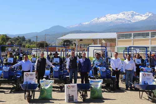 Adicionalmente, el mandatario Tony Gali benefició a 865 pequeños productores de 13 municipios con un total de 11.9 millones de pesos de apoyos al campo, atendiendo una superficie de mil 764 hectáreas. Entregó 57 tractores ligeros, más de 10 mil plantas de chabacano, durazno, frambuesa y pera, 163.9 toneladas de fertilizantes, 161 paquetes de herramientas agropecuarias y dos módulos acuícolas. También 130 cheques por contingencias climatológicas y 11 de apoyo a la producción y comercialización del campo. Además firmó - como testigo de honor- el convenio de agricultura por contrato entre la empresa Noganut y productores de nuez de castilla, que permitirá comercializar 125 toneladas hasta por un monto de 15 millones de pesos, favoreciendo a 200 campesinos de cinco localidades de la zona. En el evento estuvieron presentes los Secretarios de Finanzas y Administración, Enrique Robledo; de Educación Pública, Ignacio Alvízar; de Salud, Arely Sánchez; de Desarrollo Rural, Sustentabilidad y Ordenamiento Territorial, Rodrigo Riestra; de Seguridad Pública, Jesús Morales; de Competitividad, Trabajo y Desarrollo Económico (Secotrade), Jaime Oropeza; de la Contraloría, Rodolfo Sánchez; de Cultura y Turismo, Roberto Trauwitz y de Desarrollo Social, Roberto Villarreal. También el encargado de despacho de la Fiscalía General del estado (FGE), Gilberto Higuera; el Director General del Instituto de Seguridad y Servicios Sociales de los Trabajadores al Servicio de los Poderes del Estado de Puebla (ISSSTEP), Eugenio Mora; el Director del Comité Administrador Poblano para la Construcción de Espacios Educativos (CAPCEE), Gustavo Guzmán y el Presidente Municipal de San Salvador El Verde, Pablo Romero, entre otros invitados especiales.