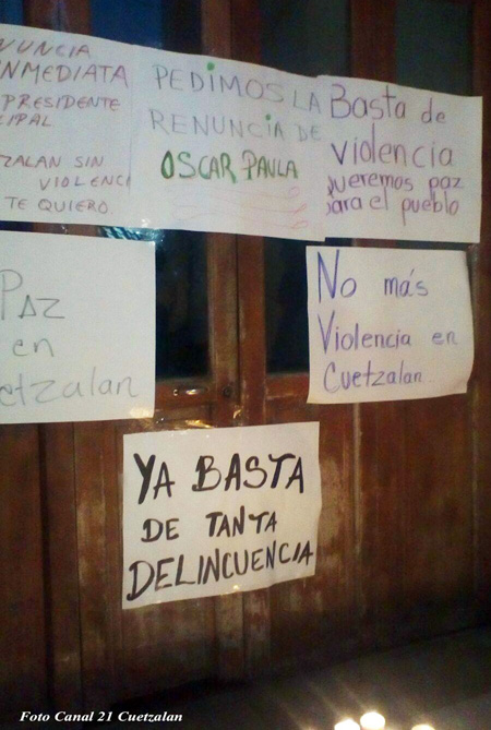 Los asistentes recorrieron calles del centro con velas y frente a la Presidencia municipal colocaron cartulinas en donde expresaron que si el edil Óscar Paula Cruz no tiene la capacidad de frenar este problema, que ponga su renuncia. Algunos manifestantes comentaron que dar a conocer números de actos de delincuencia es irresponsable porque la mayoría de delitos no son denunciados y porque varios sucesos no fueron corroborados y solamente fueron rumores que no fueron verificados. Lo que más preocupa a los cuetzaltecos son los asaltos a mano armada, especialmente a casa habitación o en carreteras como el tramo Cuetzalan – Yohualichan, donde comerciantes han sido baleados al no detener su marcha, delitos que han afectado a personas de diversos municipios y a productores del campo de Cuetzalan. Agregaron que si el Ayuntamiento ya fue rebasado por la inseguridad, debe solicitar apoyo al estado y la federación para poner fin a esta situación y que habitantes y turistas de nuevo se sientan protegidos, ya que hechos como el asesinato de turistas el pasado Viernes 14 de abril, afecta a todo el municipio, especialmente a prestadores de servicios y casas comerciales.