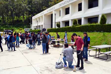 Alfredo Ramírez Torres, docente de la carrera de Ingeniería Industrial del ITSZ, comentó que los telescopios se instalaron en esta casa de estudios, pero también se colocaron para que pudiera apreciarlo estudiantes del bachillerato “José Ignacio Morales Cruz” y en la Escuela Secundaria “5 de Mayo de 1862”, en donde además se impartieron ponencias respecto a este fenómeno astrológico. Agregó que personal del Instituto se capacitó en el Instituto Nacional de Astrofísica, Óptica y Electrónica (INAOE) y este lunes instalaron filtros en los telescopios para la observación, además se impartieron talleres y pláticas a los jóvenes, en donde se les enseñó la manera de fabricar filtros, con los que pudieron apreciar el eclipse.