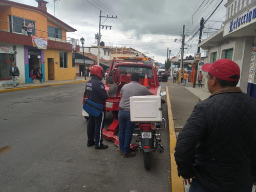 El conductor de la motocicleta dijo llamarse Pedro Monfil "N" de 19 años con domicilio en la colonia Ayoco fue presentado en la comandancia municipal para deslindar responsabilidades. Elementos de vialidad municipal tomaron conocimiento de este hecho ordenando el traslado de la motocicleta de color rojo de la marca Honda con placas del Estado de México al corralón oficial.
