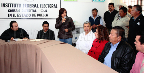 La comitiva que acudió al Consejo Distrital fue encabezada por el Lic. Abelardo Bonilla Cuevas, Representante personal del Diputado Fernando Morales Martínez, Presidente del Comité Directivo Estatal del PRI, el Lic. Javier López Zavala, Coordinador Estatal de Promoción al Voto del Lic. Enrique Peña Nieto y del Lic. Raúl González Hernández, Representante del PRI ante el Consejo Distrital 04; así como Presidentes de Comités Municipales en la región.