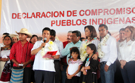 “En los juzgados no hay quien de la cara por ustedes y eso es lo que hoy vengo a comprometerme, vamos a ponerlos en el lugar que se merecen y ese lugar merece respeto, vamos a asegurarnos que existan los juzgados indígenas que puedan defender las causas de nuestros hermanos, vamos a asegurarnos que tengan la atención digna y la asesoría necesaria…” expresó la candidata del PRI.