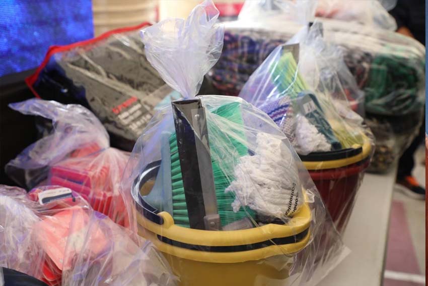 entrega de sanitarios, colchonetas, 51 toneladas de