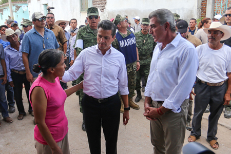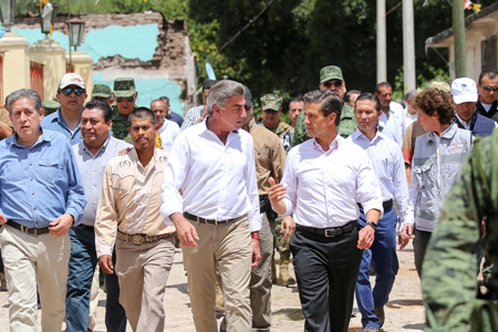 A través de un recorrido y una sesión de trabajo en este municipio, ambos realizaron una evaluación de los daños para su inmediata atención. Acompañado de los Secretarios de la Defensa Nacional, Salvador Cienfuegos; de la Marina, Vidal Soberón; de Gobernación, Miguel Ángel Osorio Chong y de Cultura, María Cristina García, Peña Nieto explicó que en Puebla se ejecutará el plan de acción para cuantificar los siniestros y manifestó su solidaridad con los deudos de las víctimas. “Vamos a emprender toda esta tarea de reconstrucción que habrá de involucrar el esfuerzo conjunto del gobierno y de la sociedad. Yo estoy seguro que unidos habremos de estar de pie y habremos de superar esta tragedia y los efectos del sismo que dejó esta devastación”, aseguró.