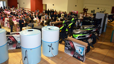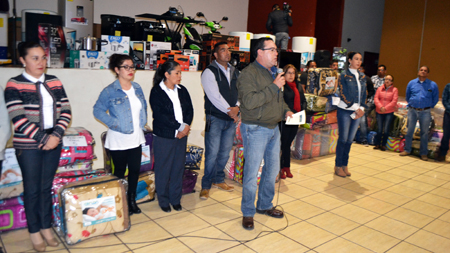 Además durante el convivio se entregaron cobertores a los 285 trabajadores, los cuales tuvieron un costo de 111 mil 600 pesos y también se les rifaron cuatro motocicletas y 45 regalos como pantallas, lavadoras, y enceres domésticos, beneficiando a todas las áreas como Limpia Pública, Servicios Generales, Registro Civil, Policía Municipal, Vialidad y Parquímetros, Regidurías, Contraloría, Protección Civil, DIF Municipal, entre otras.