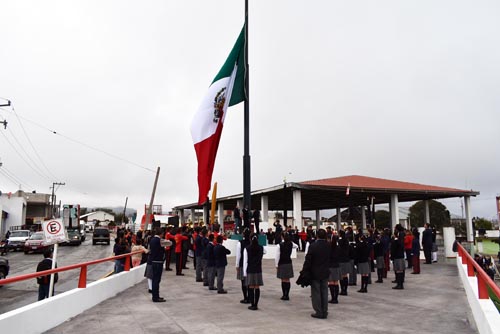 “Para nosotros siempre fue una ilusión que hoy venos realidad, este espacio siempre desde que legamos y platicando con los compañeros Regidores y la gente del Ayuntamiento decíamos que carecíamos de un Asta Bandera monumental en donde sea un espacio de congregación de estudiantes, de maestros, de todo tipo de sectores sociales para enaltecer los símbolos patrios” expresó el Presidente. Añadió que en esta zona los espacios no tenían función, pero ahora se cuenta con el reloj, la cancha de futbol rápido, un área de juegos infantiles, área de servicios, la cancha de basquetbol, además de que se remodelaron la estación del ferrocarril y el parque que se encuentra a un costado, todo esto dijo que ha dignificado la imagen de este municipio. Finalmente dijo que la obra de remodelación del parque se encuentra en proceso y se encuentra en proceso la gestión para conseguir recursos que permitan remodelar el auditorio, el cual requiere de una transformación, para lo cual dijo que agradece el respaldo de los diputados Jorge Estefan y Xitlalic Ceja, la embajadora Blanca Alcalá así como al gobierno del Presidente Enrique Peña Nieto.
